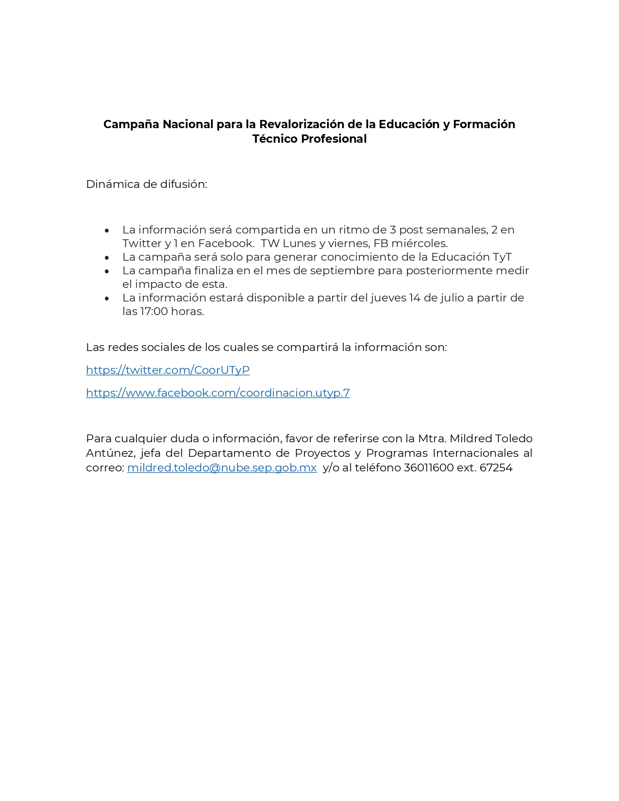 será promocionada en las redes sociales para las y los educandos, para promover